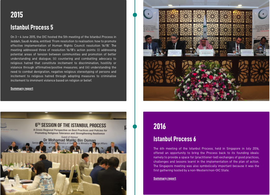 The Istanbul Process is the forum where States and other stakeholders share good practice and experiences in implementing the eight action points of Resolution 16/18. Explore the outcomes of these meetings on this page.